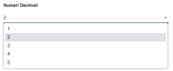 The "Decimal Numbers" field controls the numeric precision of all decimal values in the exported CSV file. The system offers five precision levels, from 1 to 5 decimal places: