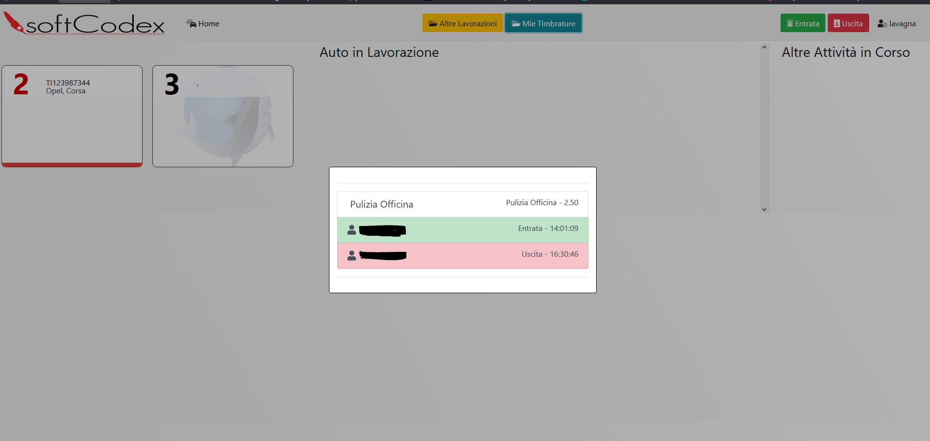 Per iniziare una lavorazione extra, il collaboratore deve prima cliccare sul pulsante "Altre Lavorazioni" e successivamente scansionare la sua card personale sul lettore per avviare il timer e iniziare la registrazione dell'attività.